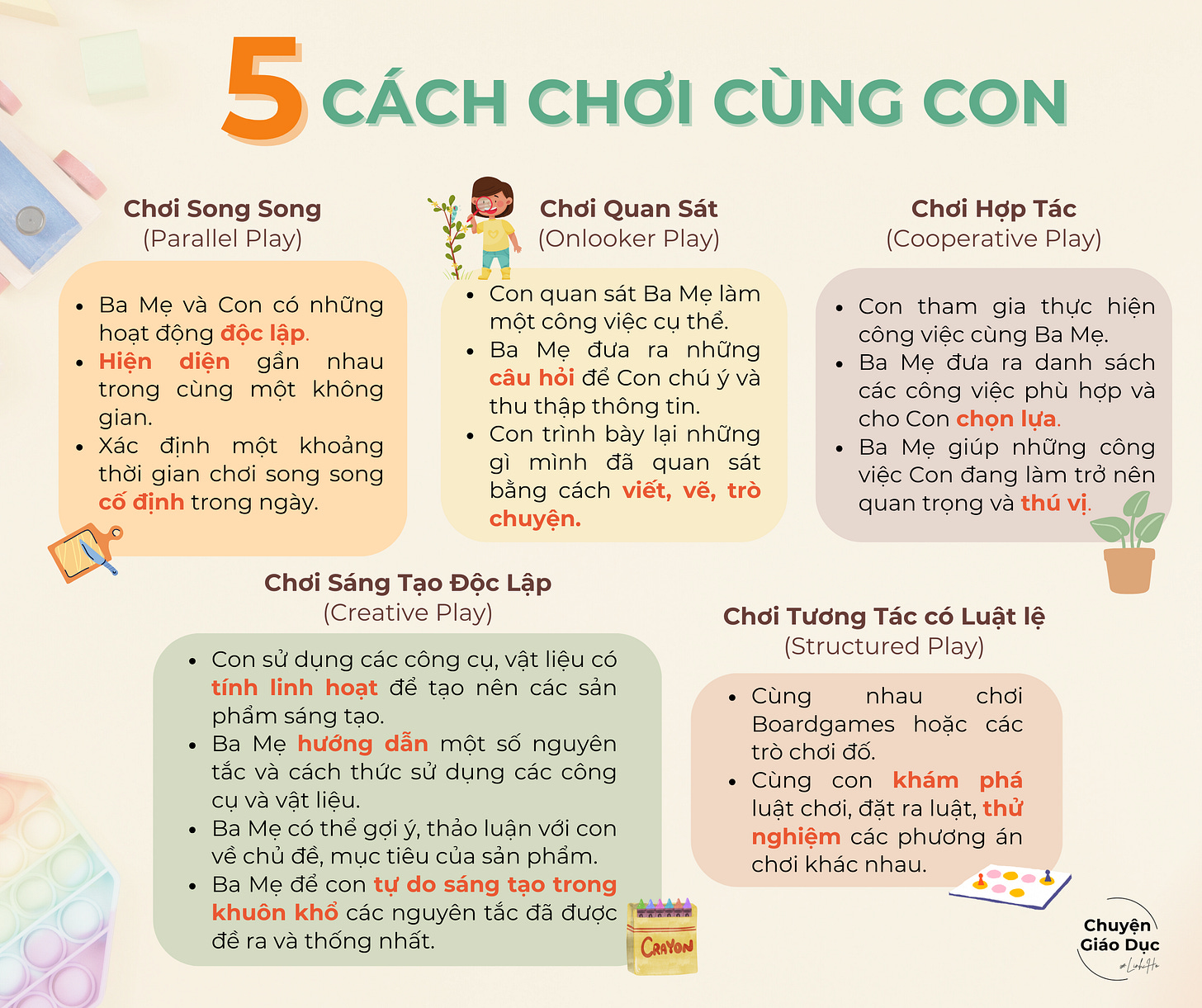 Có 5 CÁCH THỨC CHƠI ba mẹ có thể thử nghiệm: