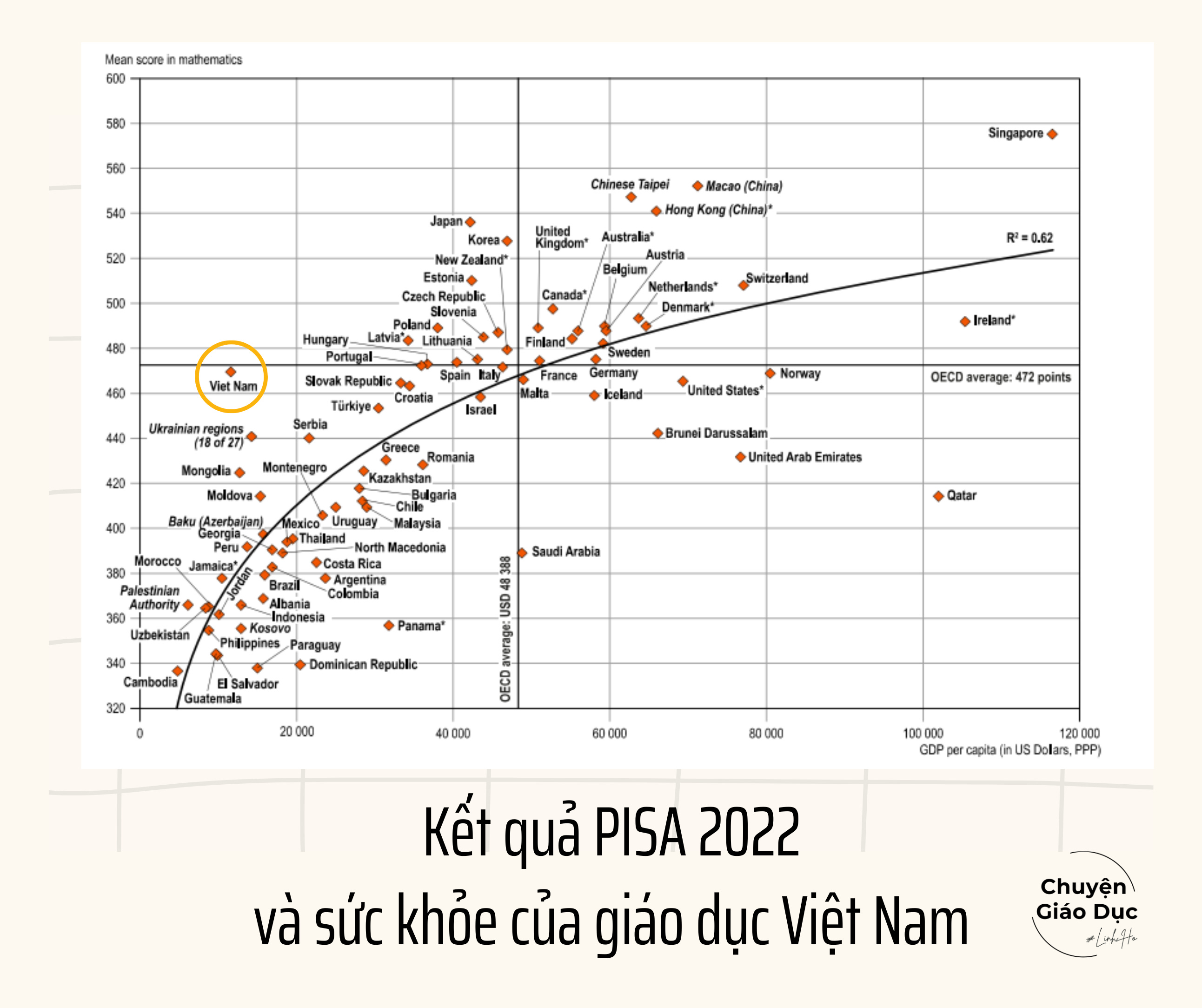 Tóm tắt kết quả PISA 2022 của Việt Nam: https://www.oecd.org/publication/pisa-2022-results/country-notes/viet-nam-a727c3a8?fbclid=IwAR28CrcX3j1f5Eb74fsXRvtS1-7AlOGPW3YD6rO11368N2HYxPqs4tGidX8#chapter-d1e11
